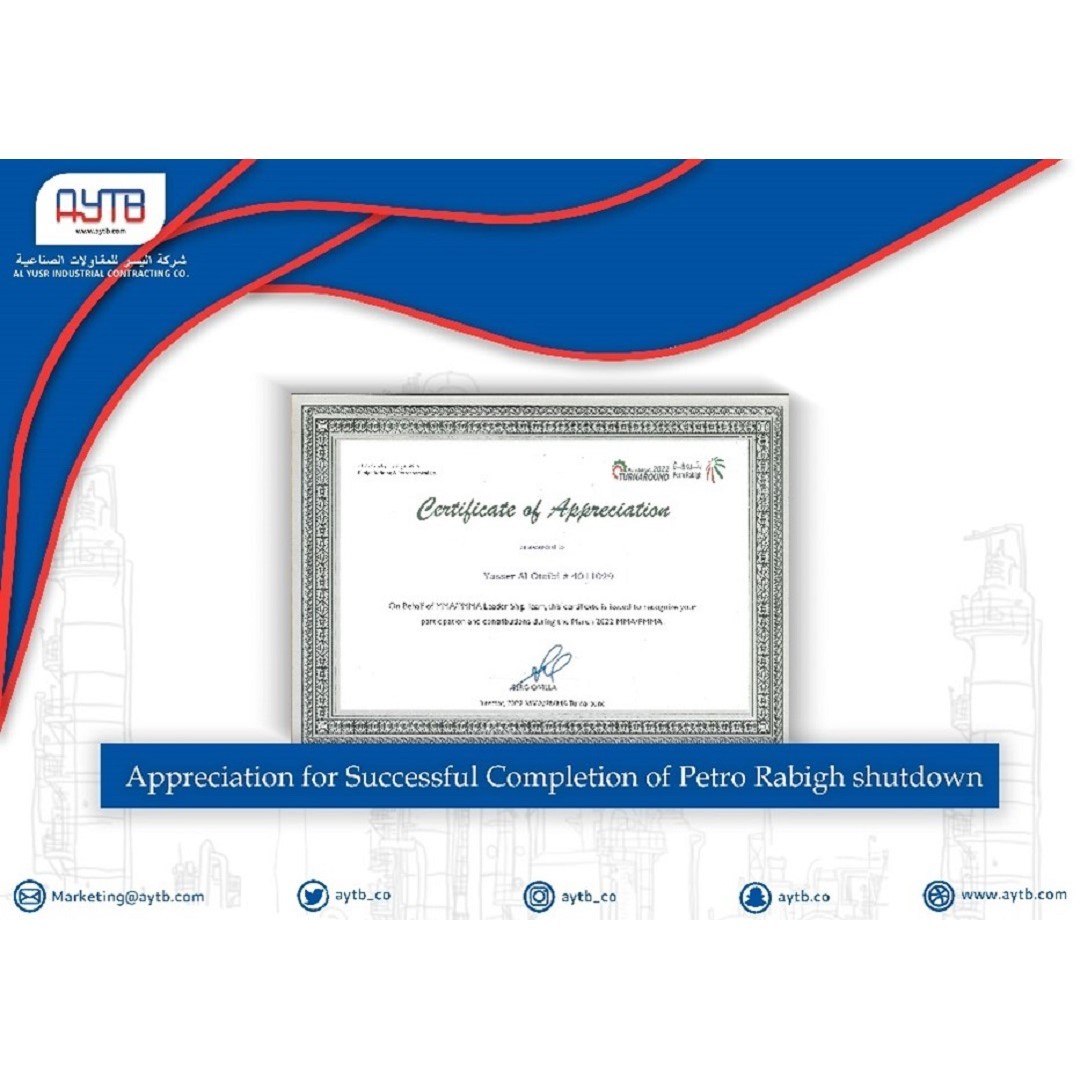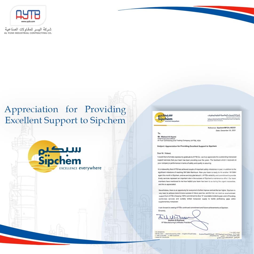 Appreciation for AYTB successful contribution and performance in Sipchem 2022 Turnarounds2022-06-30
