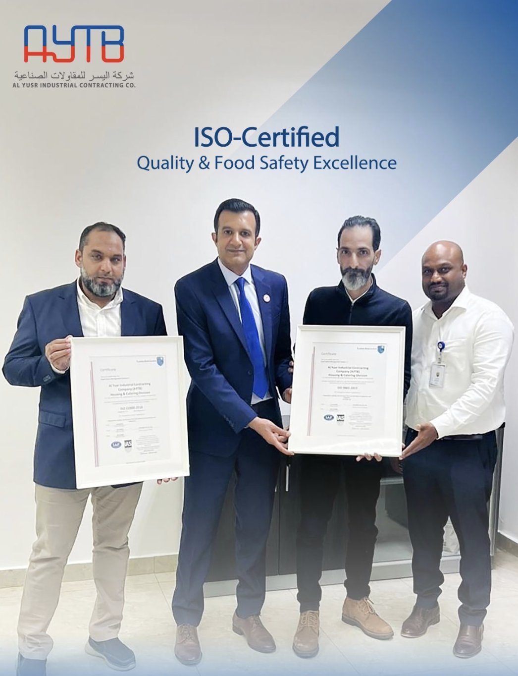 AYTB is proud to announce that its Housing & Catering division has achieved ISO 22000:2018 and ISO 9001:2015certifications.These certifications reflect our commitment to....