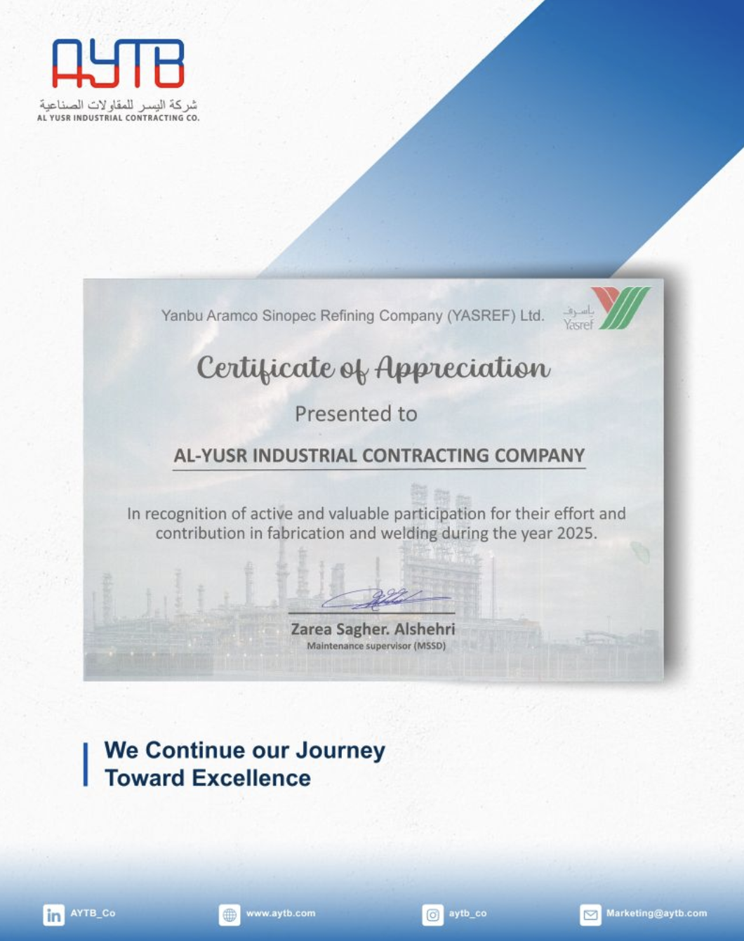 AYTB Recognized by YASREF for Turnaround 2024 Contribution2025-09-15