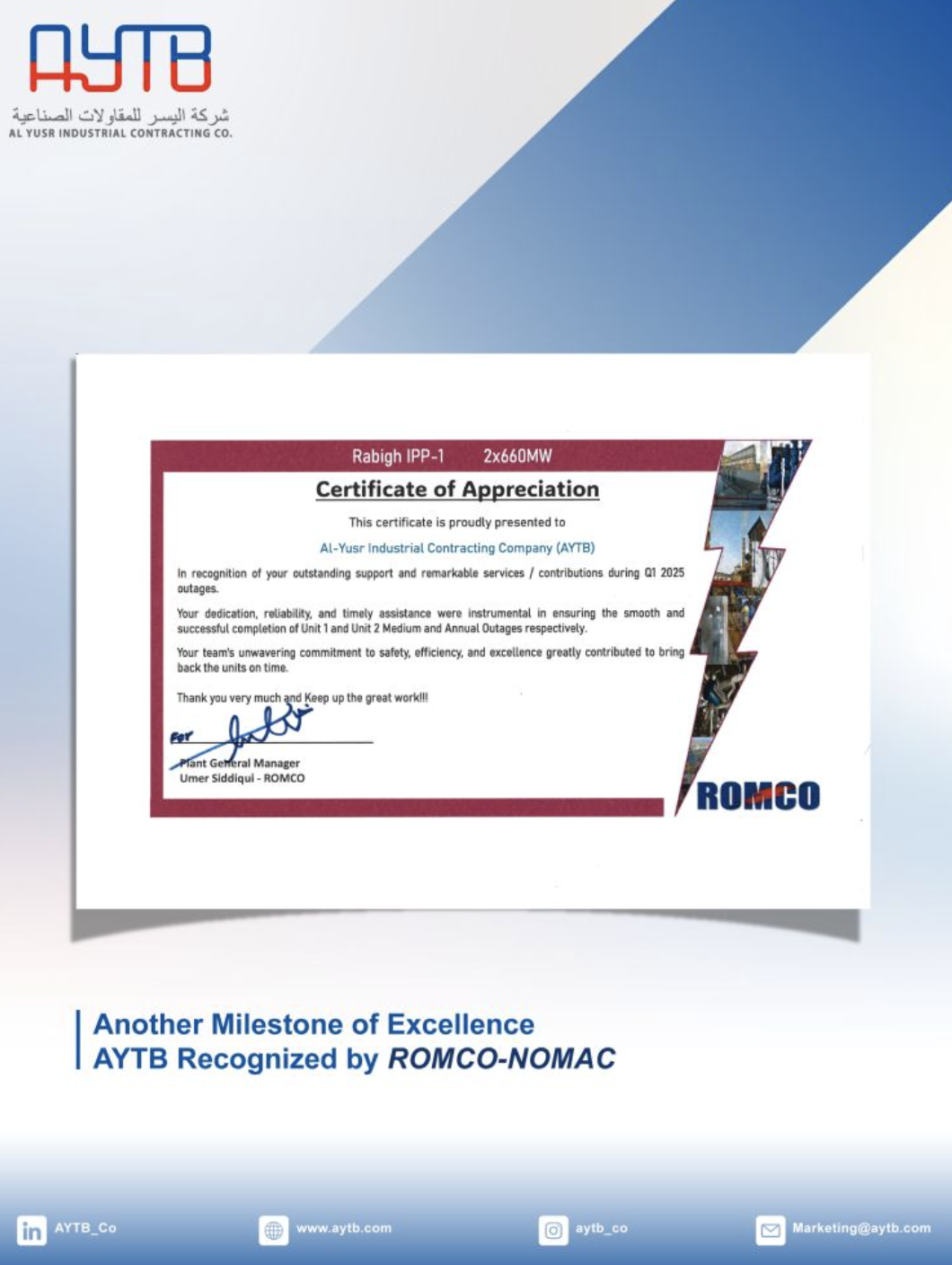 AYTB Honored by Rabigh Power Company for Excellence during Turnaround 20252025-09-17