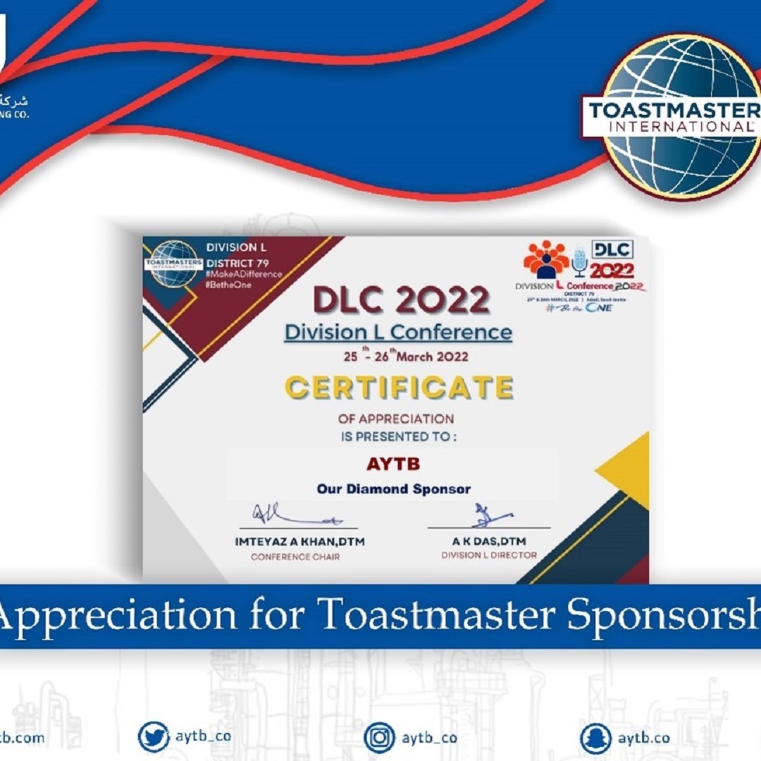 Appreciation for Toastmaster Sponsorship2022-03-26