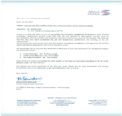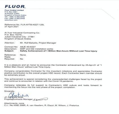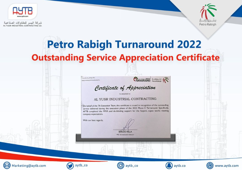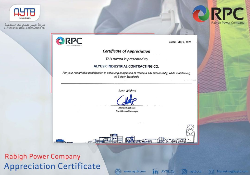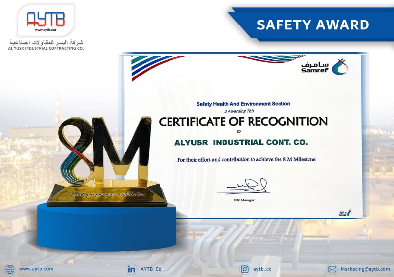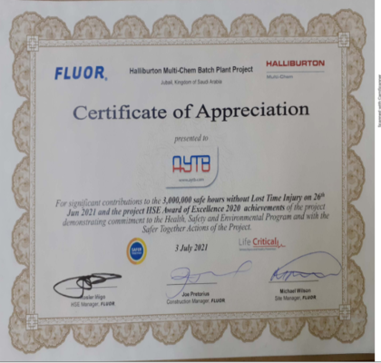 AYTB has always been unrivalled among other big contractors with its safety records and has been recognized by its clients with multiple awards for millions of safe man hours. This is because of one of the company's major assets its experienced and dedicated employees who ensure that any assigned job is done in a distinguished and safe manner.